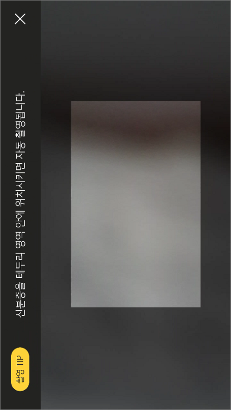 18. 주민등록증/ 운전면허증 촬영을 선택하면 카메라는 자동 실행되고 촬영도 자동으로 촬영됩니다.