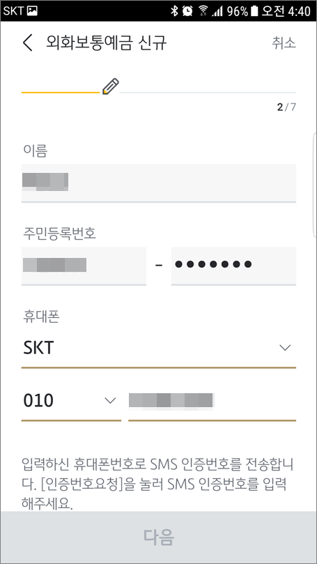 13. 이름, 주민등록번호, 휴대폰 번호는 자동으로 입력되어 있습니다.