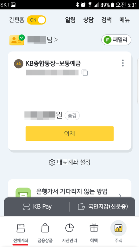❉. 국민은행 KB스타뱅킹 대표계좌 설정 추가 방법. (삭제 방법, 최근이체계좌 숨기기, 대표계좌 미사용, 잔액 숨기기)