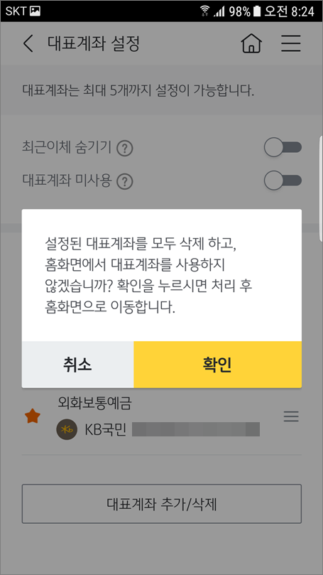 4. 대표계좌가 삭제되었습니다.