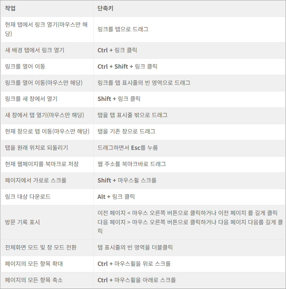 | 링크를 새 창에서 열기 | Shift + 링크 클릭 |