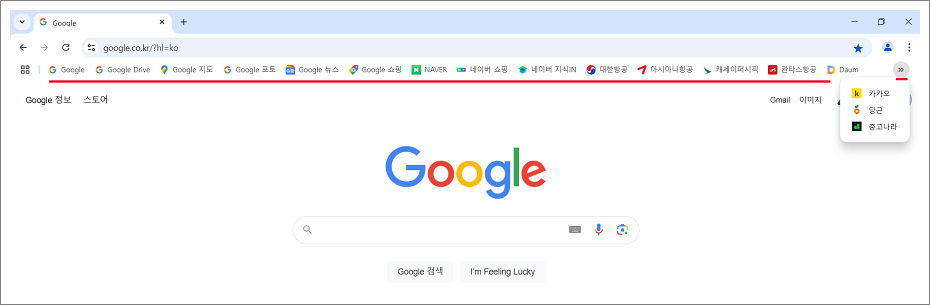 3. 크롬 북마크바가 상단에 표시됩니다.