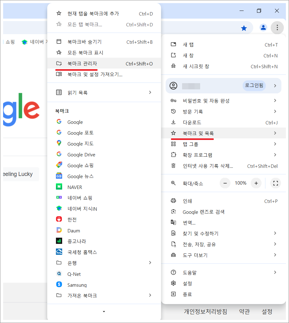 ❉. 구글 크롬 북마크바 표시 방법과 숨기기 방법. (북마크 및 목록에서 설정)