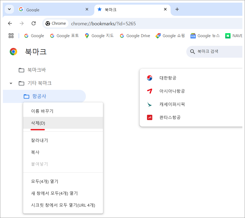 3. 기타 북마크에서 만든 폴더도 삭제가능합니다.