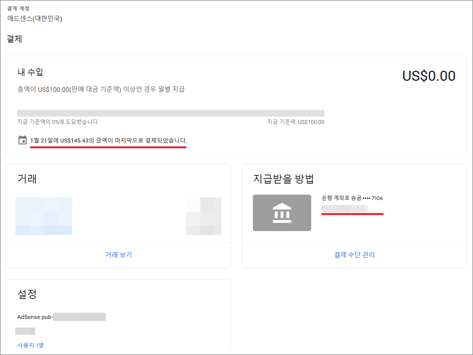 애드센스 수익금 지급일은 21일 ~ 24일이고 실제 통장으로 입금되는 날짜는 지급일로부터 1일 ~ 3일 정도 소요됩니다.