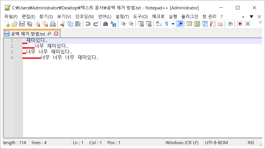 노트패드 Notepad++ 텍스트 파일 공백 제거하는 방법입니다.