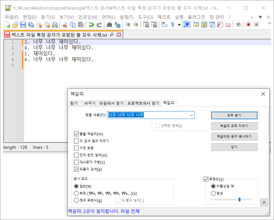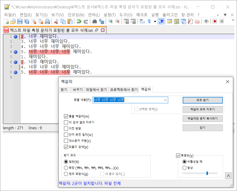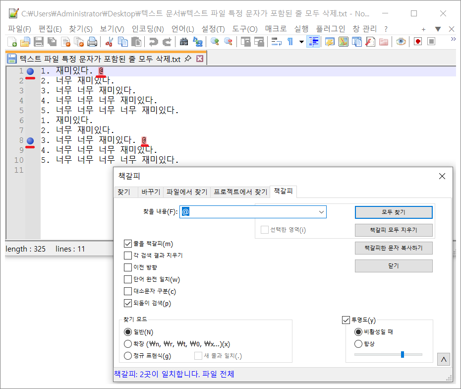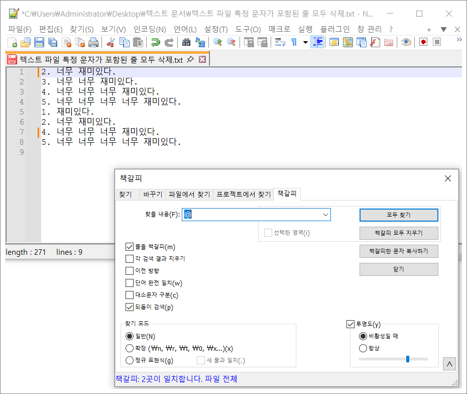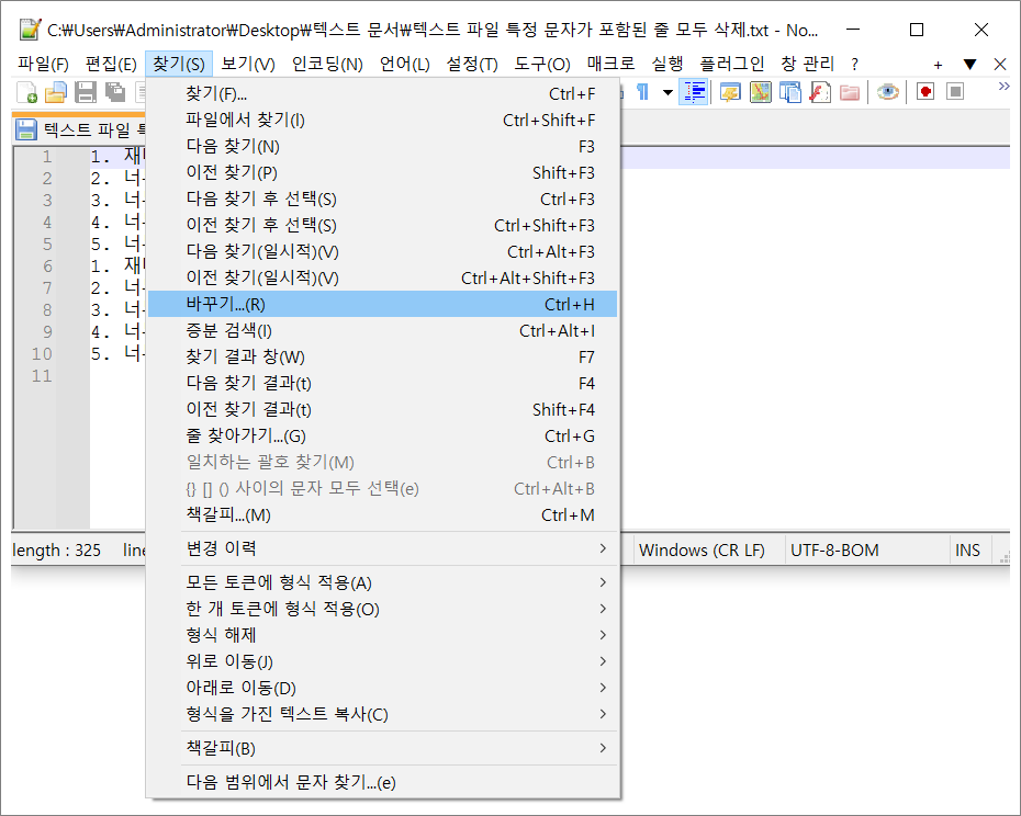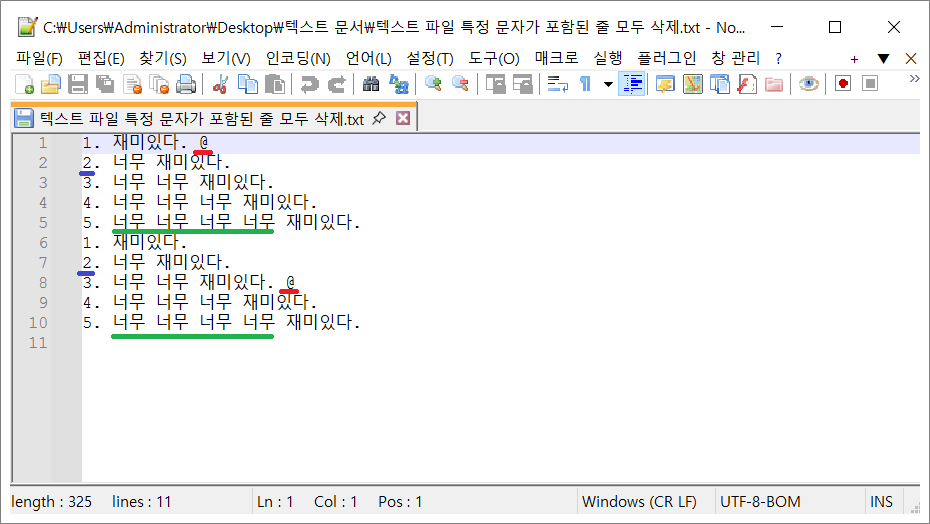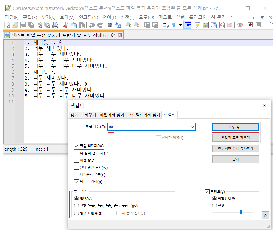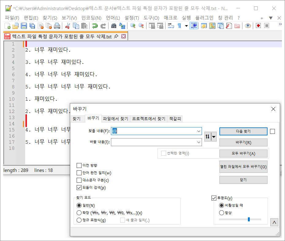 ❉. 노트패드 Notepad++로 텍스트 파일에 특정 문자가 포함된 모든 줄 삭제하는 법.