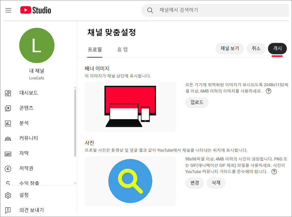 유튜브 프로필 사진 변경하는 방법은 채널 프로필 사진을 선택하거나 채널 맞춤설정을 선택합니다.
