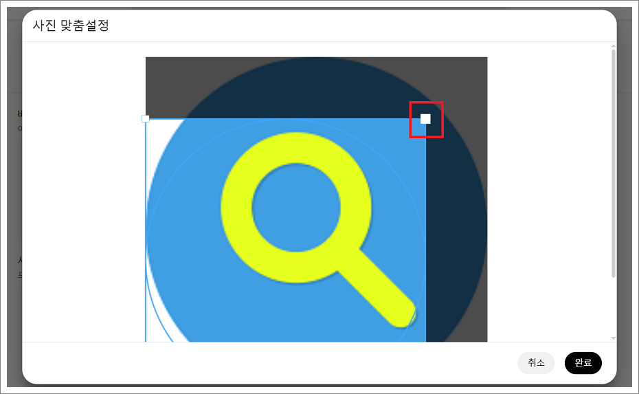 4. 사진 가장자리를 선택하면 프로필 사진으로 원하는 부분만 가능합니다.