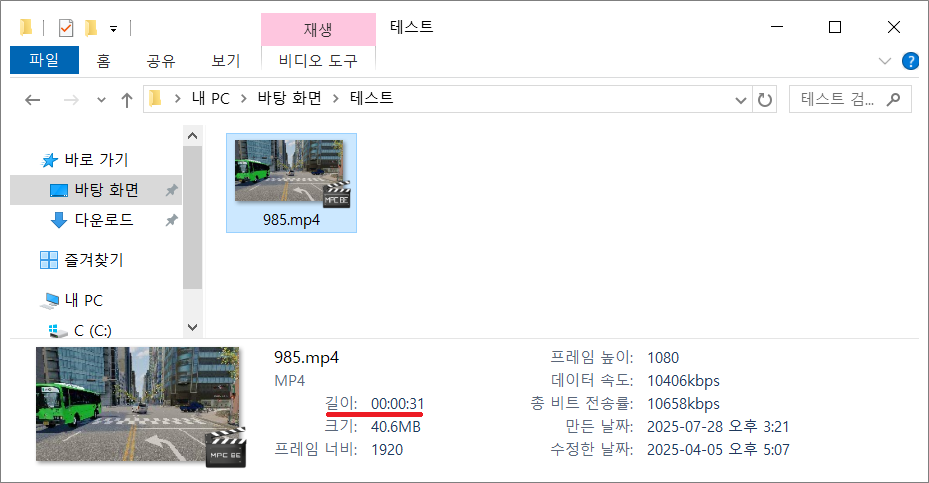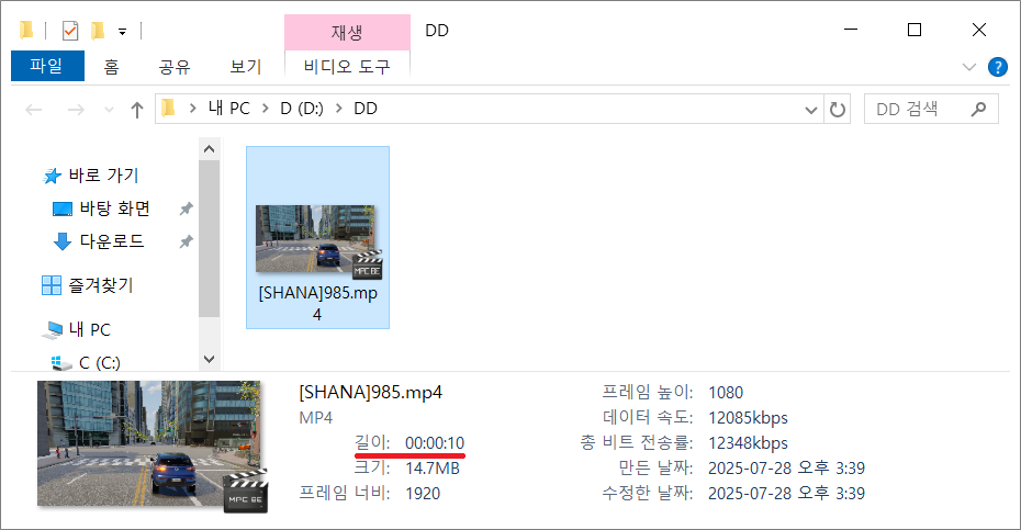 12. 원본 동영상에서 앞부분 10초만 잘라낸 편집 동영상입니다.