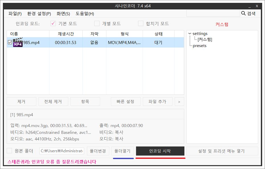 | 샤나인코더 인코딩할 때 파일 앞부분 [SHANA] 문구 없애는 방법. (0) | 2025.08.13 |
