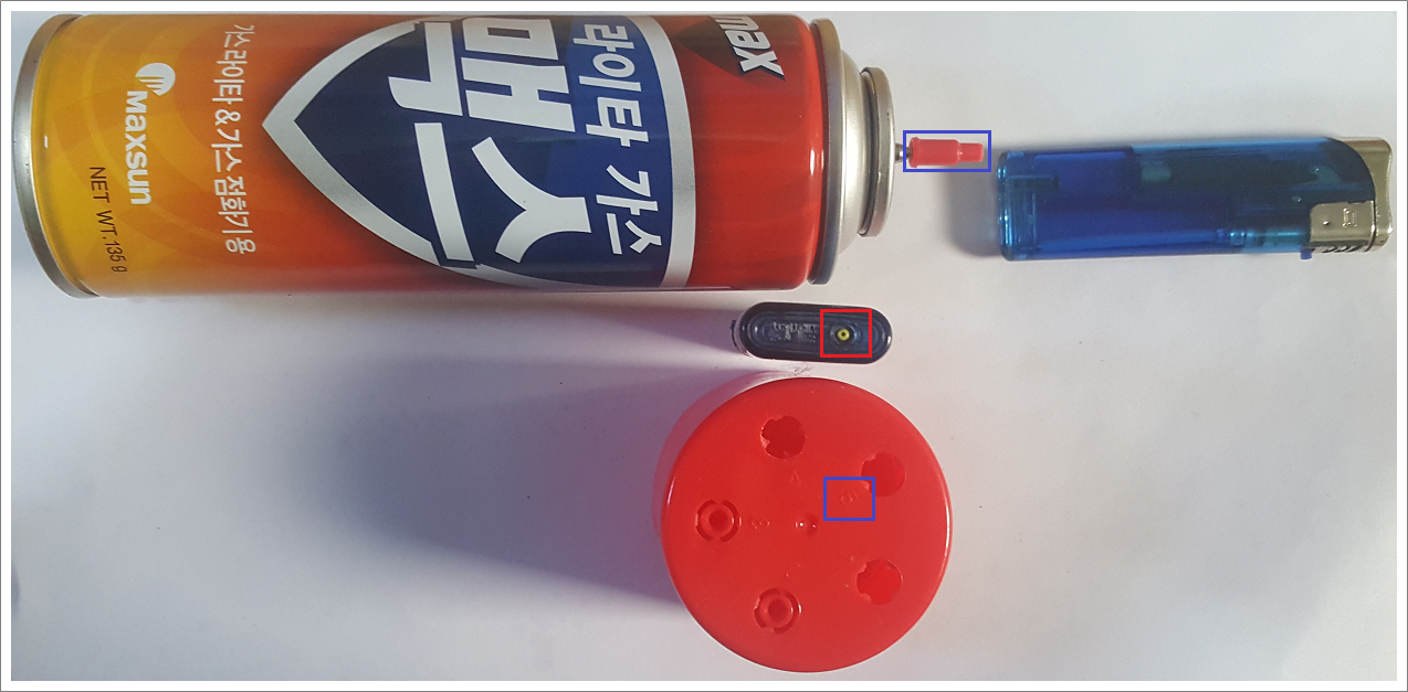 1번 노즐 경우는 구경이 라이터의 가스 주입구보다 크기 때문에 가스 자체가 안 들어갑니다.