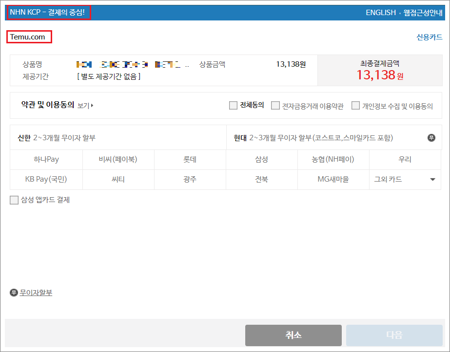 ❉. 테무(Temu) 결제 방법은 카카오페이, NHN KCP(네이버 결제대행사), PayPal, GooglePay 가능합니다.