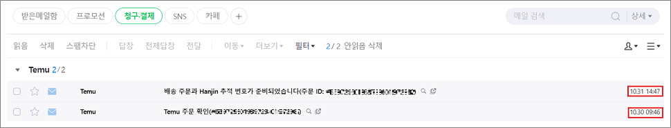 테무(Temu) 보내는 이메일은 네이버 메일의 받은 메일함이 아니라 스마트메일함으로 왔습니다.