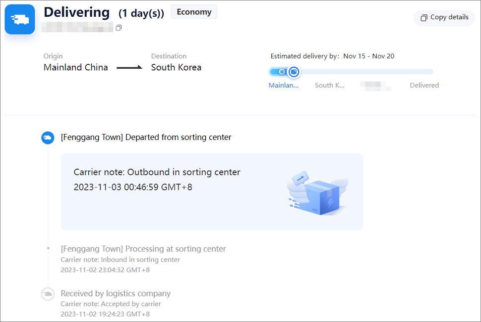 글로벌 익스프레스 트래킹을 선택하면 보다 자세한 배송 추적을 할 수 있습니다.