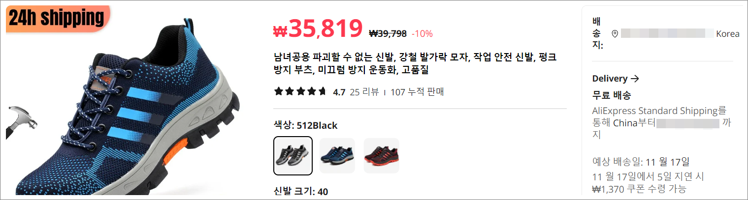 ❉. 알리익스프레스(AliExpress) : site:aliexpress.com 안전화