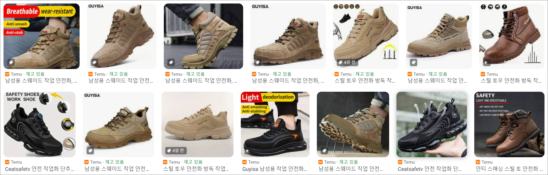 테무(Temu), 알리익스프레스(AliExpress)는 안전화뿐만 아니라 다른 종류의 상품도 한글로 제대로 검색하지 못합니다.