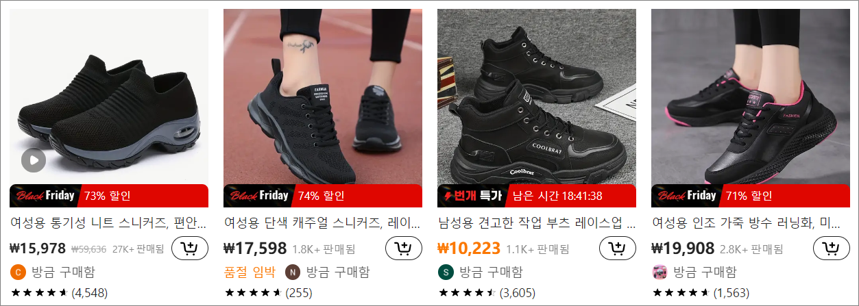 테무와 동일하게 다른 종류의 신발이 검색됩니다.