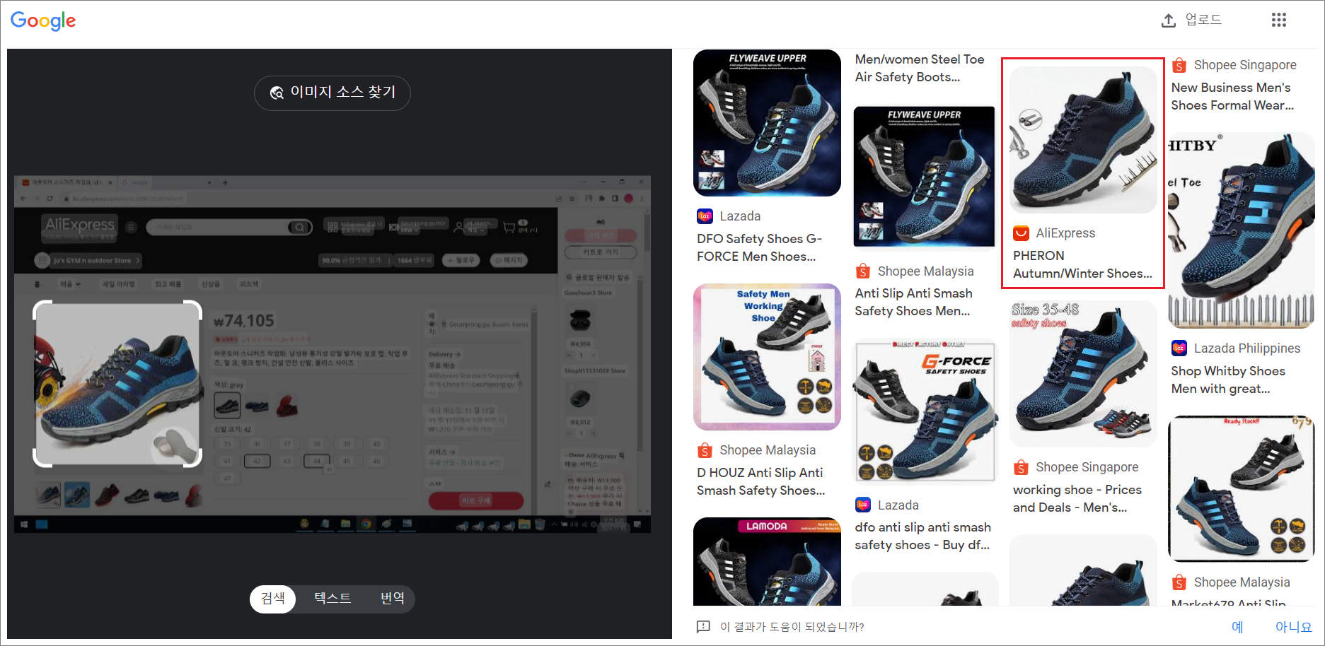 ⑥. 알리익스프레스(AliExpress) 안전화 검색.