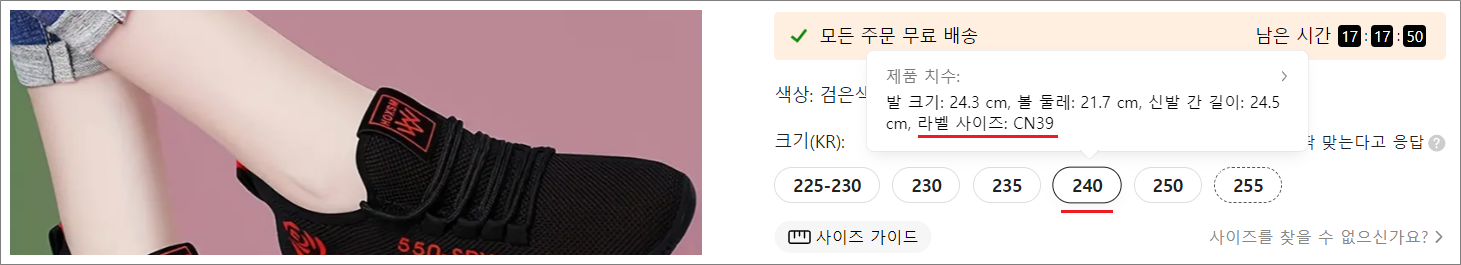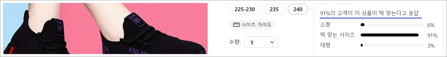 ④. 중국 온라인 쇼핑몰에서 신발 사이즈 정확도는 대략 80~90% 전후입니다.