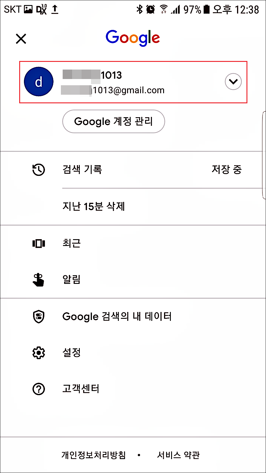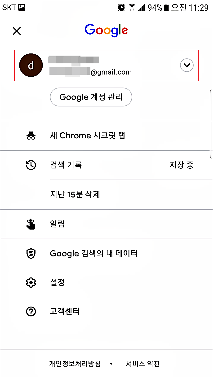 1. 구글 프로필 선택합니다.