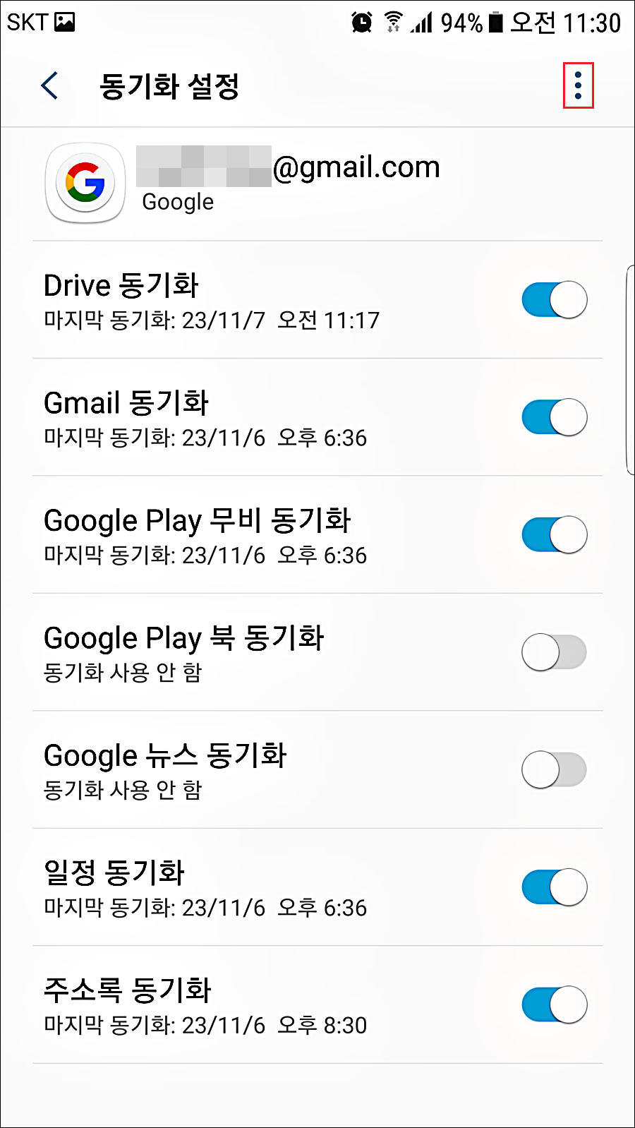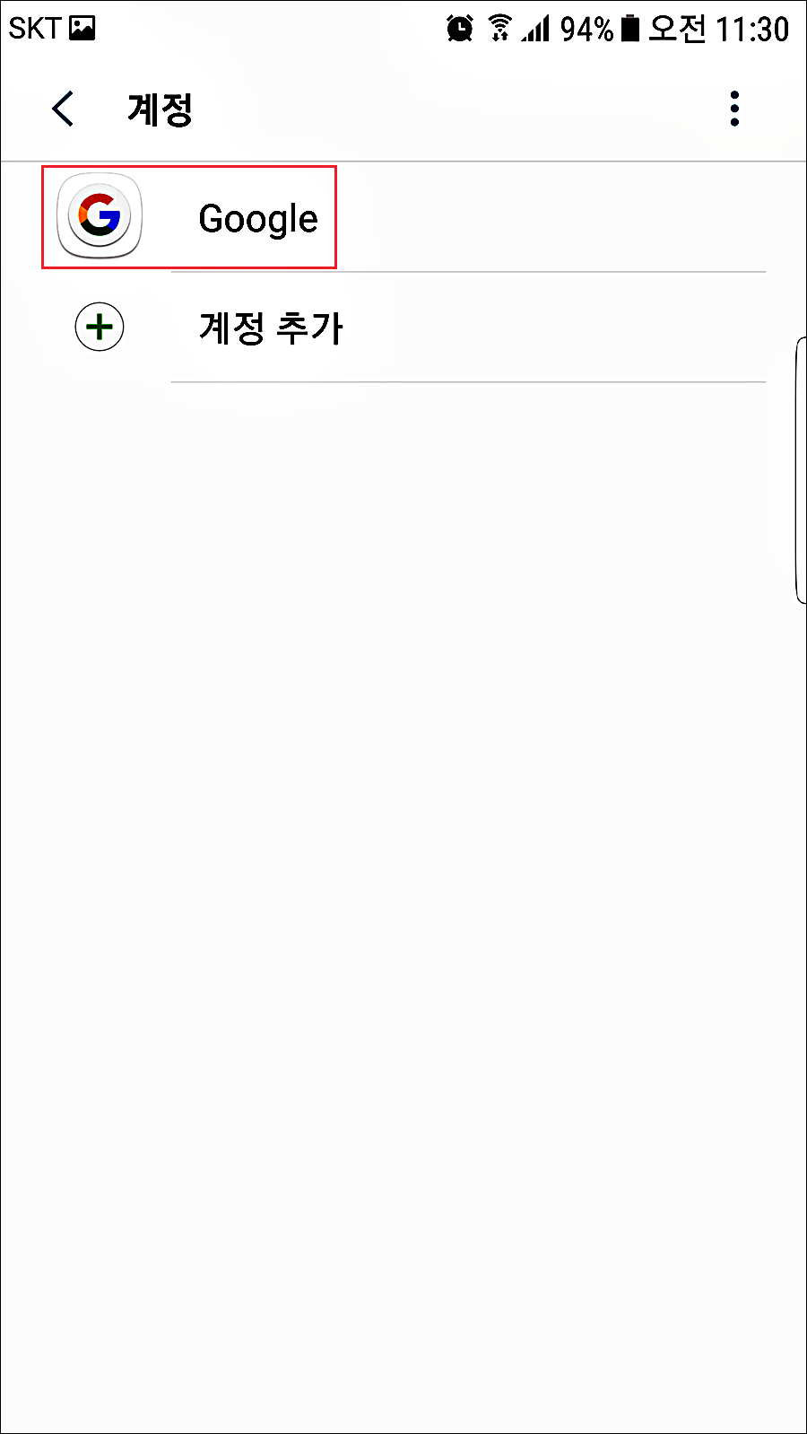 설정 > Google > 계정 선택 >.. ③과 동일.