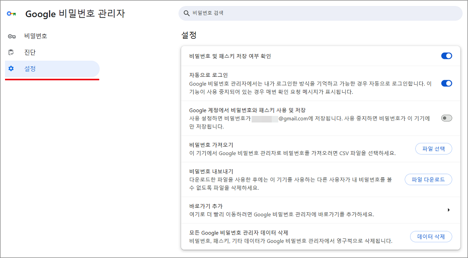 Google 계정을 사용하여 비밀번호와 패스키를 저장하고 채우시겠습니까? 의 비밀번호 저장 방법에 따라 크롬 비밀번호 내보내기와 비밀번호 가져오기 방법도 달라집니다.